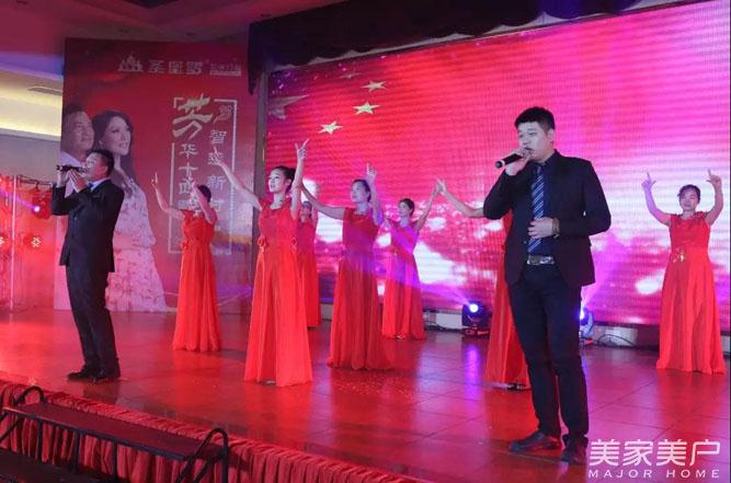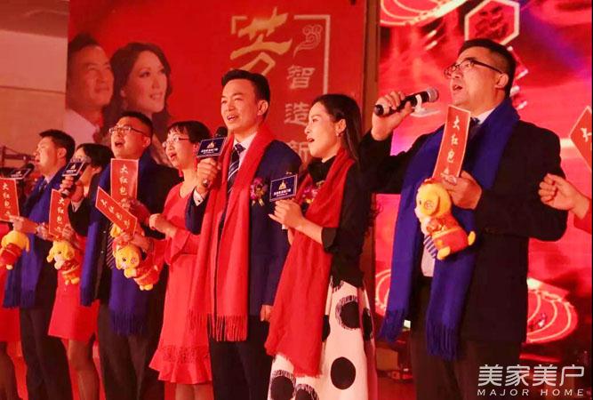 晚会尾声,圣堡罗整体门窗的管理层与表演者代表登台谢幕,凭歌咏志,2018超越梦想,迈向更辉煌的明天!