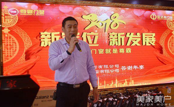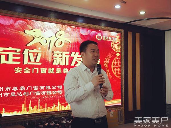 随后,尊霸门窗营销总监梁总上台发言,他为回顾了过去一年尊霸的发展历程,尽管在过去的一年尊霸门窗获得不俗的成绩,但是现在的门窗市场竞争激烈,新的一年将会是一个充满挑战、机遇、希望与压力的一年,并希望在新一年里,尊霸门窗的家人们要迎难而上,在迎接挑战中抓住机遇,再创辉煌!