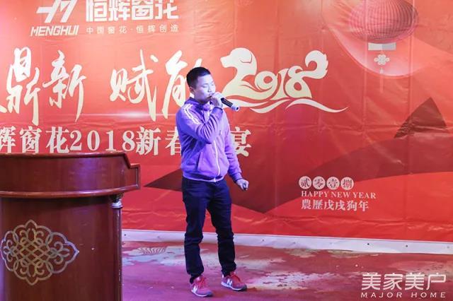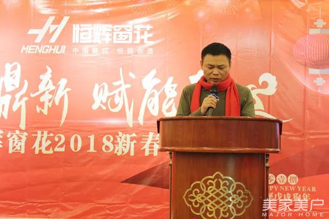 年会开始,由恒辉窗花公司总经理周杨致辞。首先,周杨先生肯定了恒辉窗花公司在2017年度的工作成果,并且感谢公司全体同仁的努力及拼搏。与此同时,他还做出了2018年新规划。