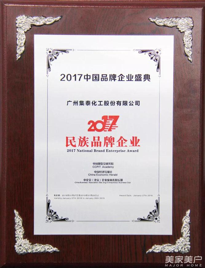 广州集泰化工股份有限公司荣获“2017民族品牌企业奖”