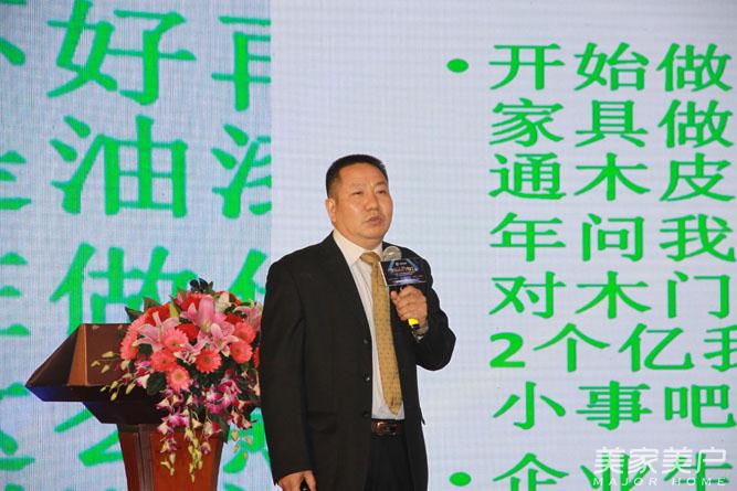 广东省门业协会年会上,广创木业总经理罗广文作《行业技术的革命,油漆工艺再创新》的专题演讲