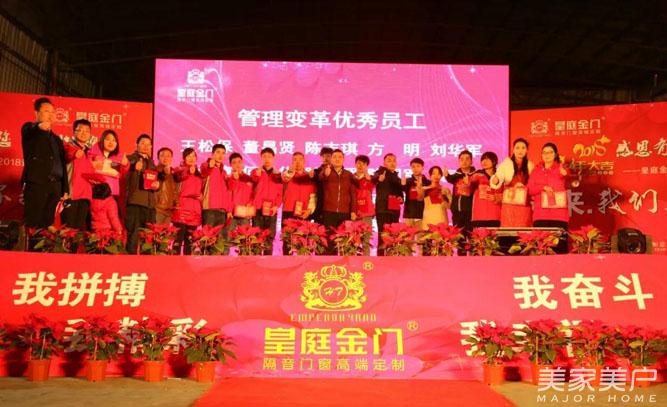 皇庭门窗2017年业绩增长80%,生产管理变革,终端活动策划,品牌营销,团队打造,生产基地的扩大等全面进行,相信2018皇庭金门一定会有更大的飞跃!