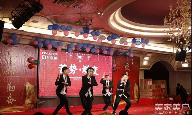 歌如潮,花如海,九号人卧虎藏龙,说学逗唱样样行。激情热舞《青春真美》引爆现场沸点、销售公司陈总倾情献唱《朋友》、以及销售公司的同事们给我们带来的激舞飞扬《踩踩踩》、又好看又搞笑的《雷人舞》...最后,由九号门窗“F4”--赵董、高总、罗总及张总共同高歌《明天会更好》,燃爆现场,将气氛推向高潮,九号门窗领导和员工纷纷加入合唱;感谢各位九号人的努力,在他们团结一心的努力之下,九号门窗必将砥砺前行,屡创佳绩.