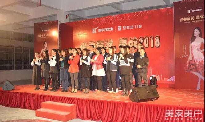 2月27日(农历正月十二),“携手奋发 ? 赢战2018” 新华兴实业 & 圣梵诺门窗2018开工年会在新落成的生产中心盛大举行,新华兴实业、圣梵诺门窗全体同仁共500多人欢聚一堂,共同参与了本次开年盛会。