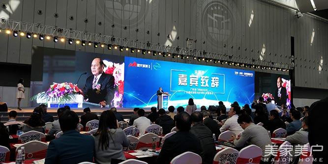 现代筑美家居有限公司制造中心总经理邢津生在大会发表致辞。他说:“2018年的家居行业,整体生态链得以转型升级,‘一带一路’的发展契机,亦推动着泛家居行业发展。现代筑美在过去一年亦开创了非凡的成绩,未来将继续加快走向世界的步伐,再创造新一轮的增长奇迹。”
