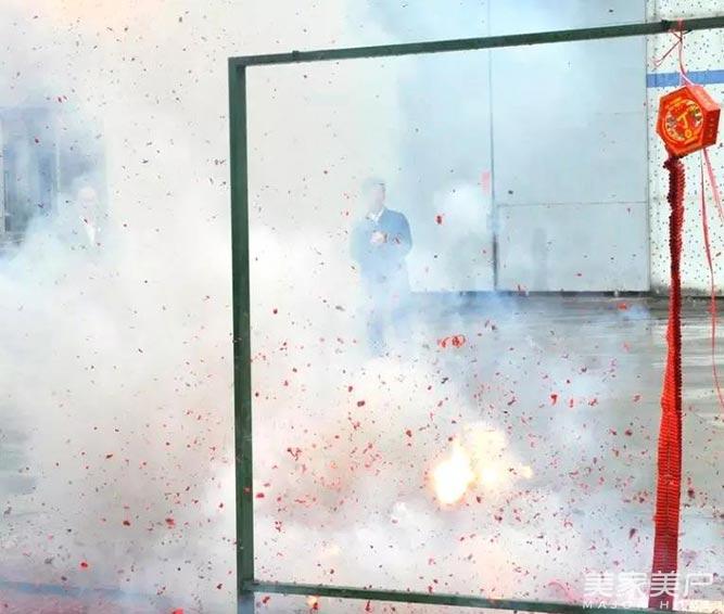 爆竹声震天,随着试产仪式的完成,3月8日上午,佛山南海新标家居制造基地内,新标家居董事长黄东江先生携一众公司高层领导及员工共同见证了新标南海门窗制造基地试产仪式这一历史性时刻。