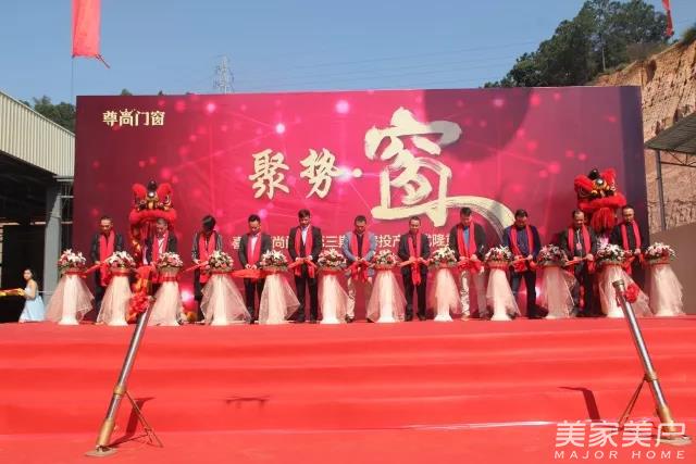 尊尚门窗领导与经销商代表共同登台剪彩。尊尚门窗第三期厂房正式投产!
