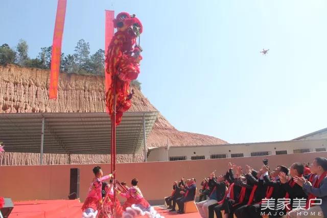 尊尚门窗总经理麦华辉与总经理麦崧辉共同点睛唤醒狮子,并带给它们散播幸福与吉祥的能力,寓意尊尚门窗生意兴隆。
