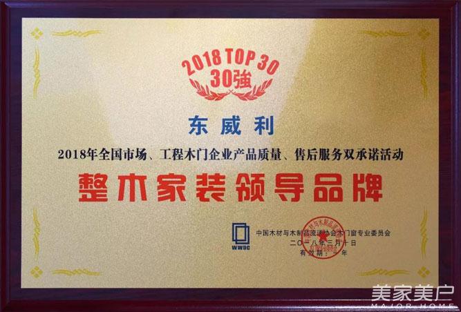 活动中,协会对中国木门行业规模型企业和品牌影响力企业进行了表彰。东威利在这次的表彰中榜上有名,荣誉获得“2018年全国市场、工程木门企业产品质量、售后服务——双承诺活动单位”,及“2018年售后双承诺活动——整木家装领导品牌”。