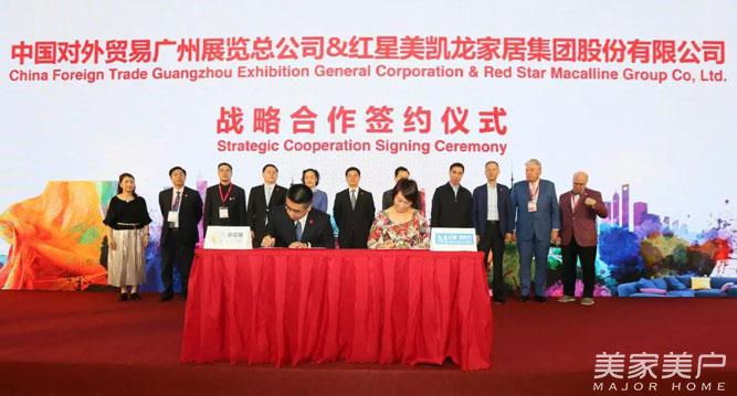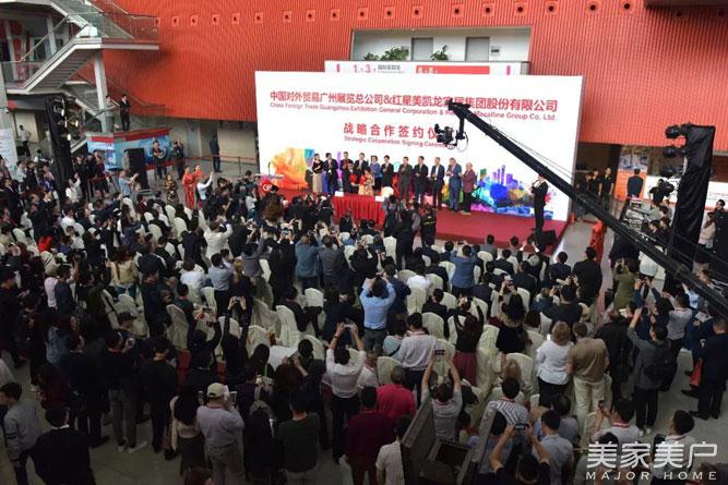 2018年3月18日,中国对外贸易广州展览总公司(以下简称中贸展)和红星美凯龙家居集团股份有限公司(以下简称红星美凯龙)在第41届中国家博会(广州)开幕现场隆重举行战略合作签约仪式。