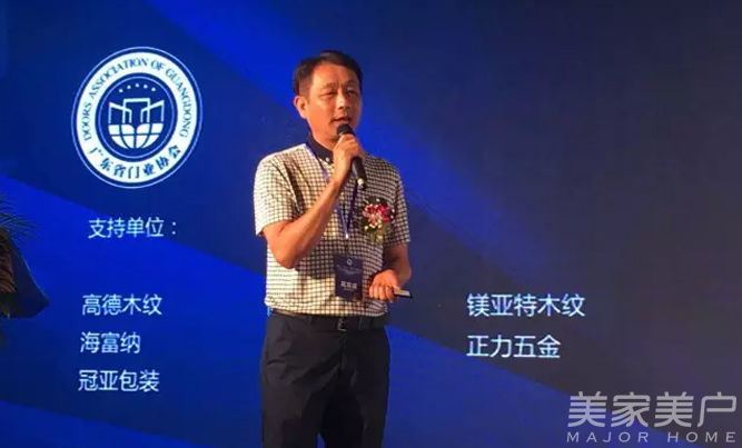 中国木材与木制品流通协会木门窗专委会会长张国林在会上致辞。他说:“看到广东门业的生机勃勃,中国门业的未来还是有希望的。通过行业优胜劣汰,行业发展会更加健康,目前有些企业抵抗风险能力还比较弱,希望广东门业企业在当前形势下要把握好方向,不能失误,要稳中求进。”