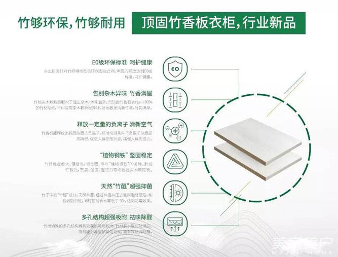 竹子不仅具备优异的物理性能,而且是高风亮节、刚直不阿的性格象征,又有风度翩翩的君子之誉,顶固打破了传统定制家居的材料使用,以竹代木,率先将这种绿色环保的高性能竹板材应用在产品上,打造出“竹”够高端的顶固衣柜系列。