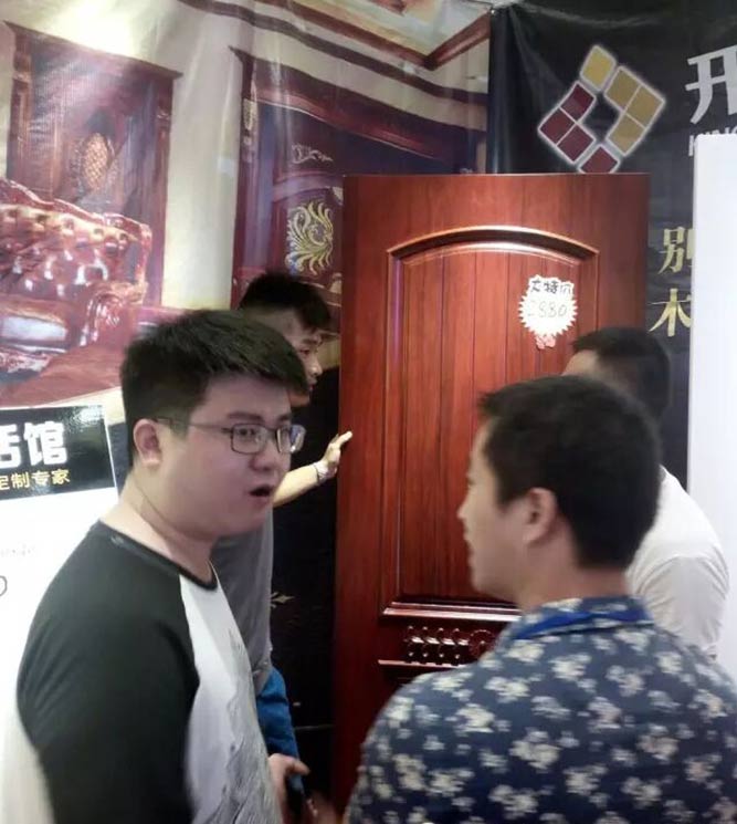 活动现场,大家热情高涨,为厂家开出的巨大优惠价振奋不已。在开盛展位前,前来咨询的消费者络绎不绝,挤满了前来咨询的客户。有的咨询此次活动的巨大优惠,有的咨询查看着产品的质量,有的向工作人员详细询问开盛木门的制作工艺…