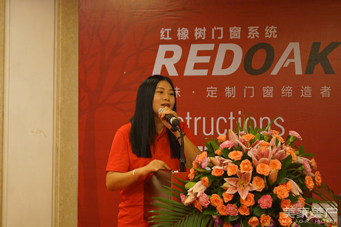 在经过沙画表演的暖场过后,经销商代表重庆红橡树门窗文雅上台致辞,她说:“一开始我是抱着尝试的心态选择红橡树门窗,经过这4年的累计,我们在重庆已经开了3家红橡树门窗专卖店,地址都设在高端卖场红星美凯龙。我要感谢红橡树门窗一直对我们的支持,没有厂家的扶持走不到今天,借此机会我想对在座的各位朋友说,选择红橡树门窗,不会错的。”