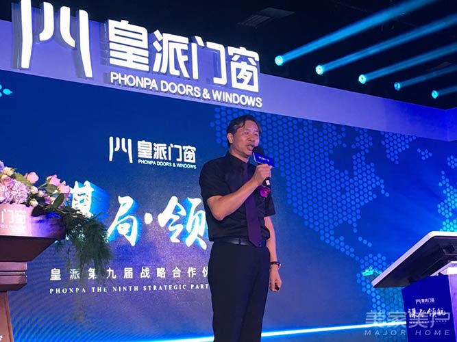 会上,皇派门窗董事长朱福庆向在座的家人朋友以及出席活动的嘉宾致谢,他说:“今年是皇派的转折机遇期,此次峰会是全体家人共谋发展的重要时刻。2016年逆势前行,赢得消费者喜爱,也在皇派家人努力下,巩固了领航位置。”朱董相信未来门窗大爷一定会由皇派领航。