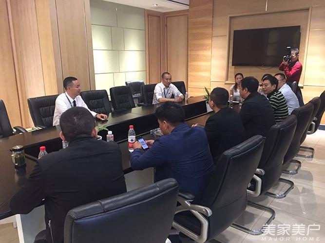 随后,邓树生一行与龙马木业董事长龚小民进行了深入的座谈,座谈中,龚小民向来访的邓树生一行详细介绍了龙马木业的发展情况。邓树生在详细听取了龙马木业的相关情况后表示,希望能有机会与龙马达成长期合作,并邀请龚小民在有时间的时候到广东龙树门业进行回访。