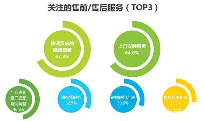 大部分潜在消费者在购买智能门锁时均非常关注安装、维修等服务,品牌商注重提供高质量的售后服务,减少消费者的购买障碍。