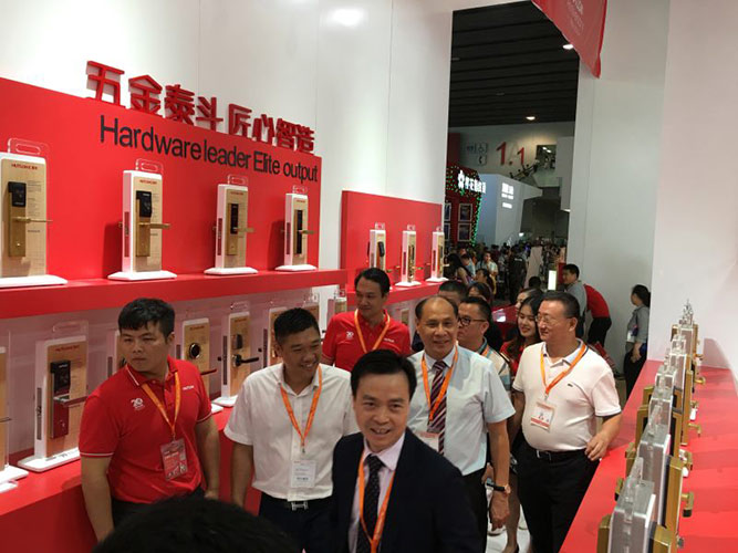 广东省门业协会会长关润开一行在汇泰龙展位合影
