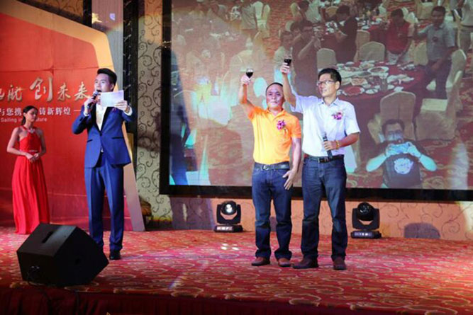 相信对于在场的众多康派经销商来说,他们需要的不仅是激动人心的鼓舞,更需要实实在在的支持,康派便将这点很好的落到实处。现场直接展示的优惠政策套餐,让众多经销商直接续签满满!在陈总和黄总的一同上台的祝酒下,大家举起酒杯,表达心中感恩与欢畅。