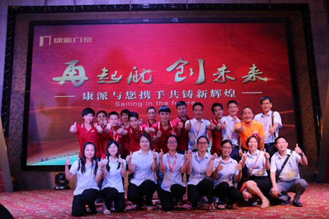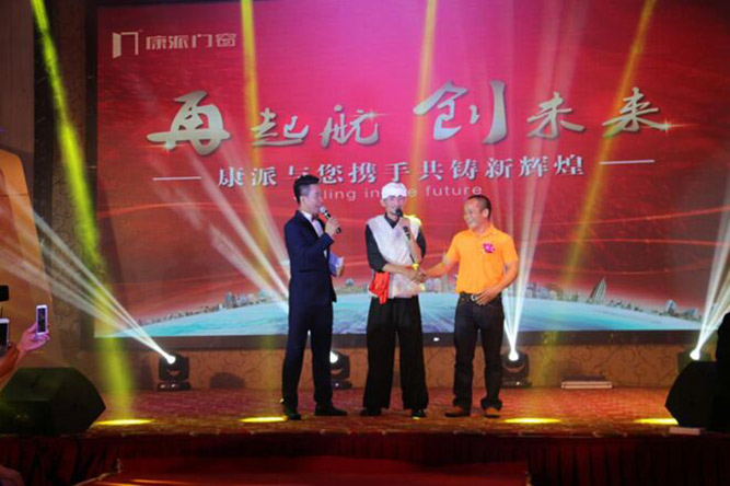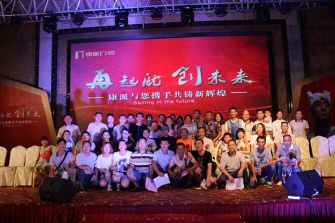 陈总表示今年对于康派来说是突破之年,在产品设计、招商加盟、品牌推广等各方面都有质的升级与飞跃,尤其在品牌打造方面,不仅有家喻户晓的草根明星代言人阿宝助阵,各地12支高炮广告、开拓互联网领域、重新建立网络门户、革新产品技术,创新设计部等等,都在不断帮助康派在行业扎根,赢得口碑,而这一切离不开的是康派家人巨大的付出,一如既往的支持和信任。