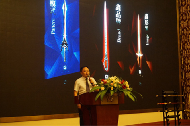 鑫鸿顺门窗总经理周浩主持了气势恢宏的亮剑仪式,向大众展示了鑫鸿顺门窗精心打造的”鑫品牌、鑫模式、鑫形象、鑫服务、鑫智慧”五把利剑,以及为众代理商保驾护航,助众英雄披荆斩棘的决心。