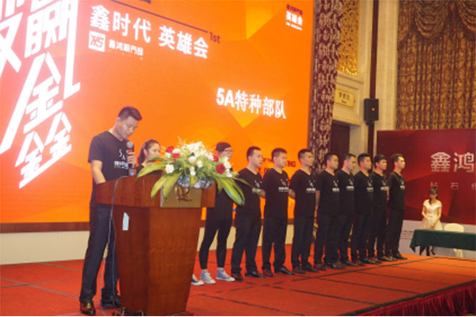 会议揭秘了鑫鸿顺创变•赢鑫的秘密武器——5A特种兵联盟。只见他们身穿统一制服,踏着整齐的步伐,醒目登台,其飒爽英姿迷倒了台下观众。鑫鸿顺营销服务团队郑重承诺将竭诚为经销商服务,得到了经销商的一致肯定,收获了热烈的掌声。