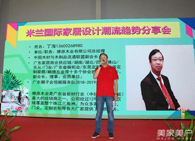 燎原木业丁海总经理首先上台致欢迎辞,同时介绍了米兰游学团的5个特色:专家团、设计团、交流团、学习团、定制团;并表示专家的现场讲解可以引导大家认识最前沿的家具设计及最先进的市场趋势,了解国际最新的家具形势,为中国设计建造沟通世界的桥梁。