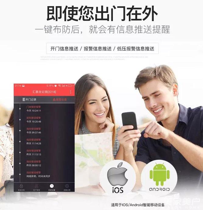 云锁安全系数提升。汇泰龙云锁采用银行金库级安防系统,确保数据不会外泄;C级防盗,达到国家最高防盗标准;遭遇暴力破坏,云端会第一时间短信提醒。在便利方面,通过指纹、密码、感应卡、手机APP等多种智能开门方式,和钥匙从此说再见;另外门锁快没电,云端会智能的发送短信提醒。