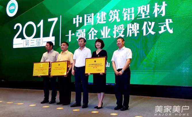 2018年6月25日-27日,中国铝加工产业年度大会在广东佛山保利洲际酒店隆重举行。在本次会议期间(26日上午)举办的“2017年(第三届)中国建筑铝型材十强企业授牌典礼”上,山东华建铝业集团有限公司被授予“中国建筑铝型材十强企业第三名”荣誉称号。
