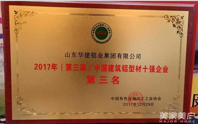 【喜讯】华建铝业荣获“中国建筑铝型材十强企业第三名”荣誉称号!