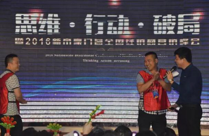 随后,上海“赢圣智业”的刘老师为与会人员进行了以“营销破局”为主题的课程开讲。刘老师围绕改变老板和员工的思维方式、老板以实际行动作改变、最后实现突破生意难做的困局这几个方面进行分析讲解。激情洋溢,劳逸结合的授课,让在座的经销商都有所共鸣。