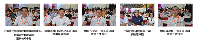 住建部建筑门窗系统课题组负责人、中国建筑门窗系统联盟副理事长兼执行总工、济南德佳机器控股有限公司董事长、易窗软件有限公司董事长邓小鸥,中国建筑门窗系统联盟常务理事、副总工、沈阳乐道铝建筑系统有限公司总经理胡宝升,山东华建铝业集团副总裁、山东博雅展览有限公司总经理丁三莲,广东省门业协会铝门窗专委会会长、佛山派雅门窗制品有限公司董事长李钧洪,广东省门业协会副会长、佛山市皇派门窗有限公司董事长朱福庆,四川门窗业协会铝门窗专委会会长、飞宇门窗科技有限公司总经理陈刚,佛山轩尼斯门窗有限公司董事长曾庆伟。