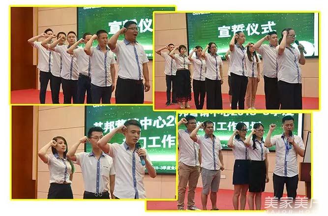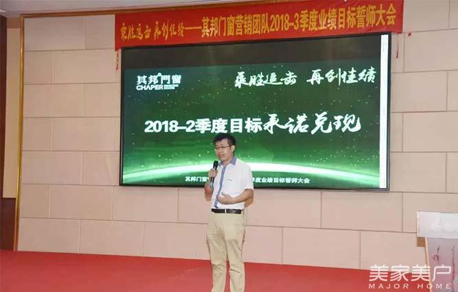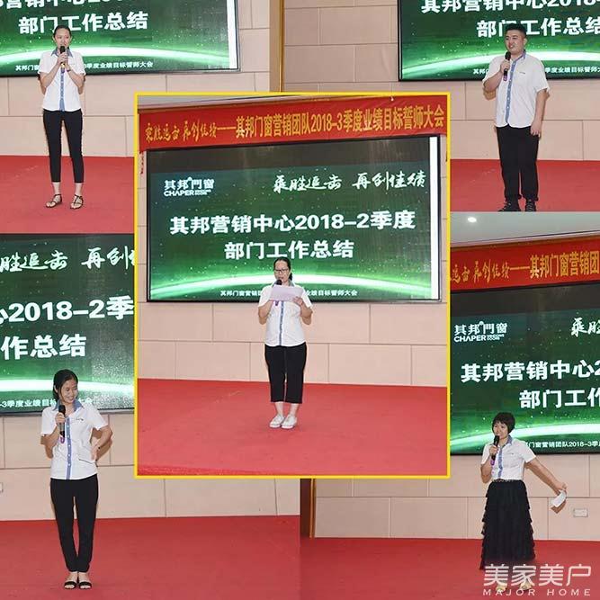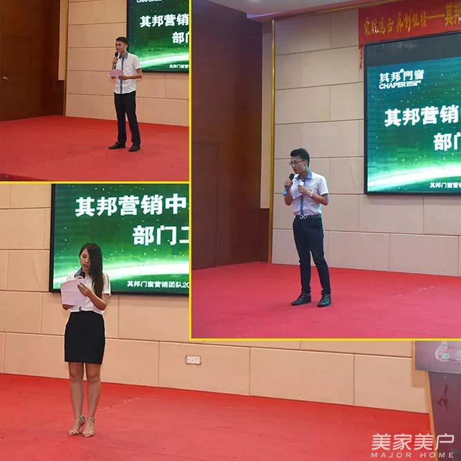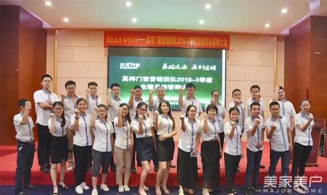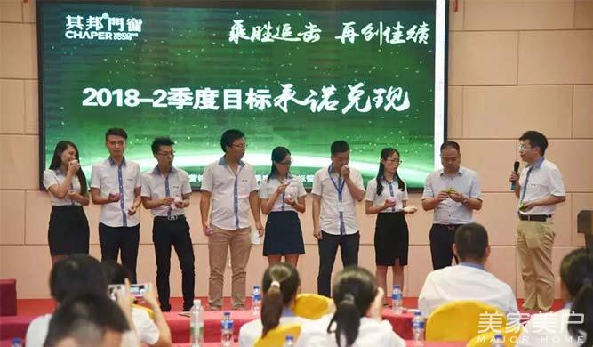 2018年7月5日,其邦门窗举行了营销中心“乘胜追击 再创佳绩——其邦门窗营销团队2018-3季度业绩目标誓师大会”。