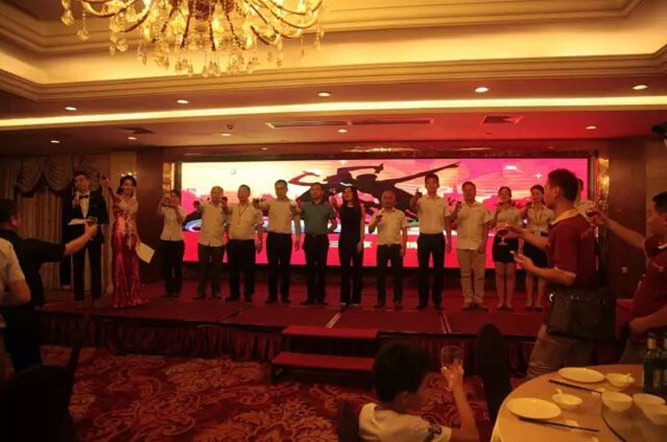 夕阳西下,晚霞染红天际,也寓意着富轩峰会的圆满成功!晚上19:00,富轩精心筹备的颁奖晚宴,在一段激动人心的打鼓声中拉开序幕。广东广播电台主持人邀请富轩门窗出席的高层领导人上台,与家人们一起高举盛着美酒的杯子,举行简单祝酒仪式。