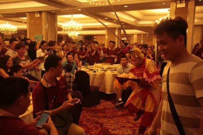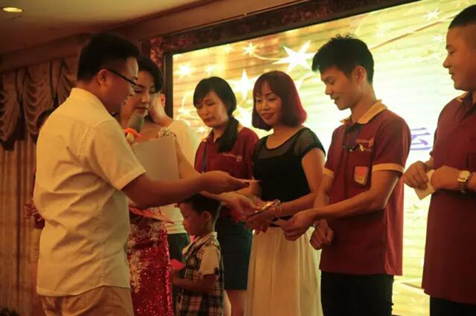 觥筹交错,欢声笑语,富轩李董与家人们一起共进晚宴。期间,举行了颁奖典礼,分别颁发了2015-2016年度最佳品牌潜力奖、最佳品牌合作奖、最佳品牌成就奖,恭喜获奖者,也非常感谢全国各地的加盟商为富轩的进步贡献自己的力量和汗水。一个个精彩节目穿插上演,富轩外贸部《爱》手语舞、销售部《霸王别姬》舞蹈、加盟商演唱经典歌曲、MJ模仿者劲歌热舞、专业爵士舞表演……当然,还有激动人心的抽奖活动,现场欢呼声、掌声雷鸣般响亮,高潮迭起。富轩家人们喜不胜收,共同渡过了一个美妙而激动人心的夜晚。难忘今宵,让我们相约明年再见!
