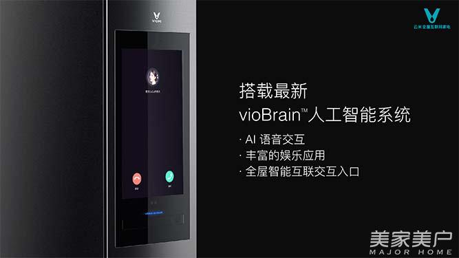 这款冰箱与传统冰箱的最大区别,就在于它能进行智能化控制。根据此前在AWE中国家电博览会上的介绍,云米21Face互联网冰箱被定位成“厨房的 IoT 中心”,为此,它配置了一块 21 英寸的 IPS 触摸屏,同时搭载了独家定制的 VioBrain人工智能系统,可以轻松实现 AI 语音互动、影音娱乐、购物等多种功能。