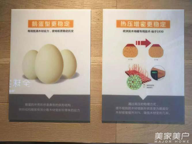 由于鹅蛋的外壳坚固厚实,蛋壳的拱形结构均匀地承受了因木材应力而带来的变形压力,能够有效抵消木材应力,使地板更稳定抗变。