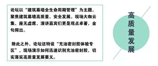 本次高峰论坛提出密封胶行业“高质量”发展倡议,是一件真正为建筑幕墙行业安全、长效发展的谋福之举,必将为幕墙行业的转型升级做出巨大贡献。