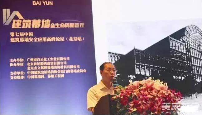 2018年7月27日在北京新疆大厦,由广州市白云化工实业有限公司主办,北京世纪胶典商贸有限公司、北京杰立辉煌幕墙装饰材料有限公司联合协办的“第七届中国建筑幕墙安全应用高峰论坛·北京站”隆重开幕。论坛得到中国建筑金属结构协会铝门窗幕墙委员会特别支持。