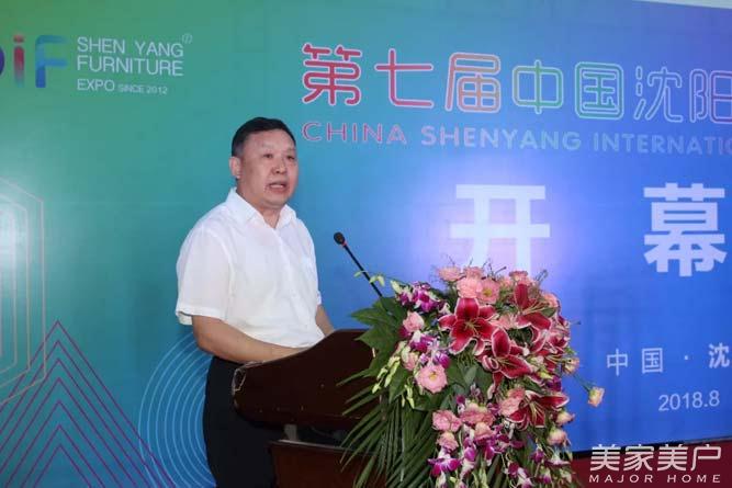 辽宁省家具协会、省工商联家具建材装饰行业商会、沈阳家具产业协会会长祖树武首先致欢迎辞。他代表组委会向在百忙之中、千里迢迢、顶烈日、冒酷暑,专程来沈的领导、嘉宾、业界同仁表示热烈地欢迎和衷心的感谢!衷心感谢大家一直以来给予沈阳家博会的支持。他说在中国家具协会、中国林产工业协会领导下,组委会创新思维,拓展服务,努力把展会做好做大做强,今年展会又有新的突破。继今年春季展成功举办后,第七届沈阳家博会又迈出新步伐。面积达到13万平方米,参展企业超过1000家,首次同时开放一二两层共计10大展厅,增设国际交流馆,开辟国际市场新路;名品荟萃,向高端迈进;坚持原创设计,新品云集;倡导环保理念,打造绿色展会;本届展会,开展了“百城千店万商”邀约大行动。有13万国内外业内人士预约登记参会。