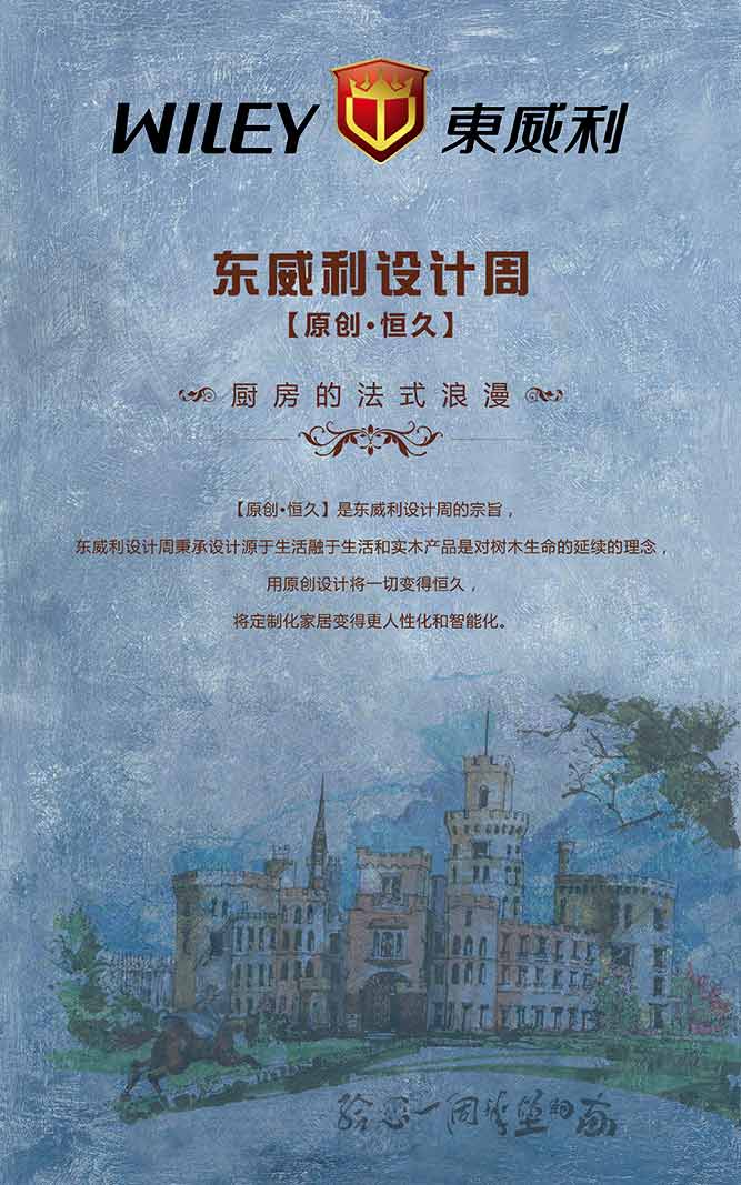 「原创·恒久」是东威利设计周的宗旨,东威利设计周秉承设计源于生活融于生活和实木产品是对树木生命的延续的理念,用原创设计将一切变得恒久,将定制化家居变得更人性化和智能化。