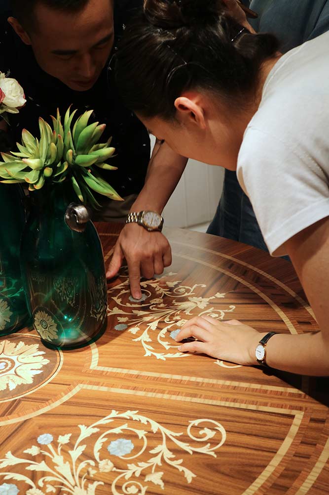 时至今日,人们更关注“贴皮拼花”这门工艺的本身价值——古老的拼花家具在这种工艺上面的精湛程度,是现代家具所无法比及的,一件精美的拼花家具表面,也许使用了上百种不同的木料薄片,但一眼望去,不仅衔接自然而且选材精到,一块图案之中还可以通过烤花做到颜色渐变的效果以及阴影渲染的感觉,宛如一片天然图画。