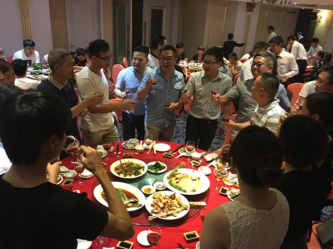 经过一天收获满满的交流会议,在觥筹交错的晚宴上,大家举杯欢畅,如一家人和谐融洽。东威利大家庭不断壮大,所有家庭成员将一起与东威利同奋进,共进退。期待东威利下一个城堡故事……