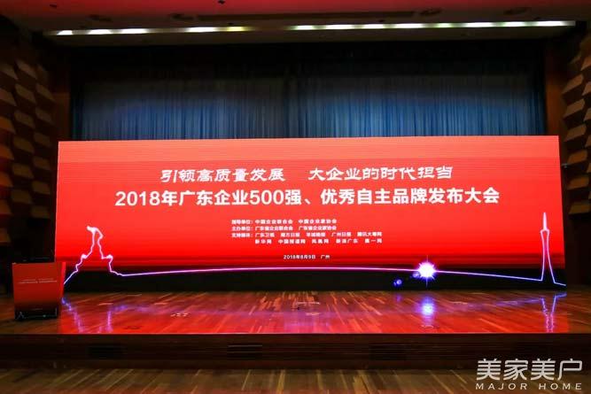 2018年8月9日,由广东省企业联合会和广东省企业家协会主办的“2018年广东企业500强、广东省优秀自主品牌发布大会暨企业发展高峰论坛”在广州白云国际会议中心隆重召开。
