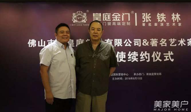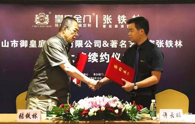 2018年8月15日,皇庭金门董事长许董与皇庭金门品牌代言人张铁林在北京隆重举行续签仪式!