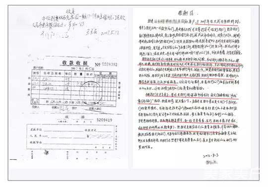 ↑湖北武汉东西湖奥林匹克花园用户于2007年购买的梦天木门收据及感谢信