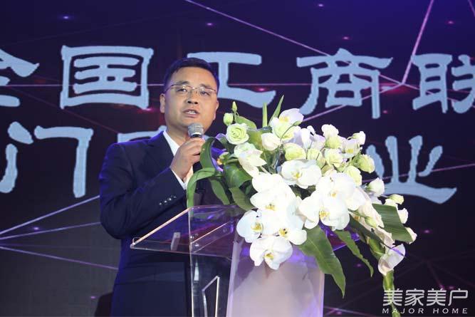 全国工商联机关党委副书记、纪委书记李冰上台为门窗专委会会长余静渊授牌