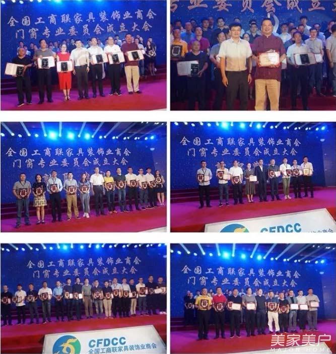 论坛环节结束后晚宴正式开始,本次大会也进入到万众瞩目的揭牌、授牌环节。全国工商联机关党委副书记、纪委书记李冰,全国工商联家具装饰业商会执行会长张传喜,全国工商联家具装饰业商会秘书长张仁江等领导嘉宾上台,共同为全国工商联家具装饰业商会门窗专委会揭牌。