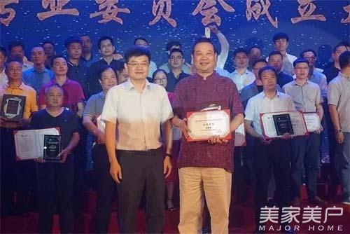 全国工商联机关党委副书记、纪委书记李冰上台为门窗专委会会长余静渊授牌
