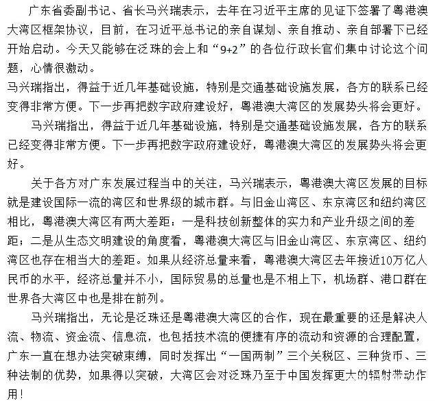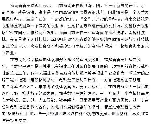 马化腾去年在香港举办的大湾区论坛上提出粤港澳大湾区手握了几副好牌,首先要打好勒柯吉创新这副牌,今天他提出,在泛珠地区这个更大的棋盘上要下好科技创新和数字变革这两手棋,特别是通过数字变革穿针引线,把“9+2”省区这11颗明珠串起来,集结成数字泛珠,真正发挥产业集群和协同创新的效应,实现“9+2>11”。今年腾讯提出的目标是希望成为各行各业的数字化助手,助力泛珠地区各行各业的数字化转型升级,为大家提供最有效的数字接口和最丰富的数字工具箱,并且和泛珠地区的政府企业一起共建数字生态。